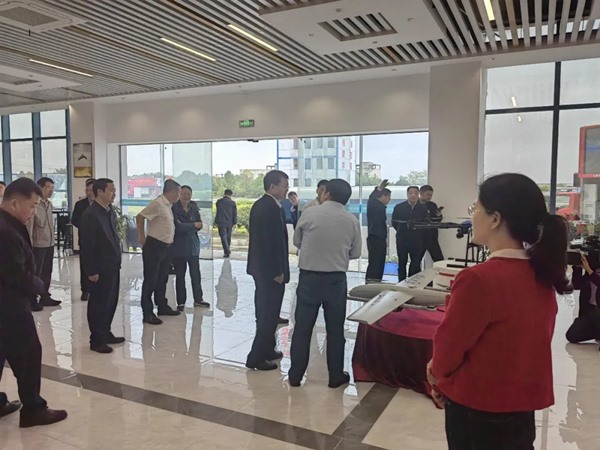 Chairman Li Xinnong introduced the company's future research and development of the "Xunlong" vertical fixed hybrid large unmanned aerial vehicle to Vice Governor Wan Guangming and Mayor of the Direction Army, and gave encouragement and recognition.