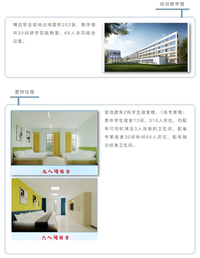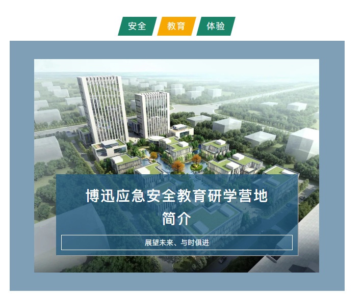 新余博迅应急安全教育研学营地(以下简称博迅安全营地)位于江西省新余市高新技术开发区阳光大道2699号,总占地203余亩, 由江西恒玖时利上市公司控股,新国内首家从事青少年应急安全研学实践教育的专业营地。营地坚持“人民至上,生命至上”的实践教育理念,组建了50余名优秀教师团队,开设了室内外研学实践课程22门,并确立了“与时俱进,发展创新,确立特色”的课程服务思想,逐步优化师资配备和课程建设,为广大青少年提供更加优质的研学实践教育服务。2021年6月完成一期建设后至今日,营地已接待近5万名市内外中小学生研学旅行,取得了预期效果和宝贵经验,2021年10月后营地启动二期建设计划,确立成为“立足新余,服务江西,国内知名”的特色工业旅游研学实践教育营地的发展目标。
